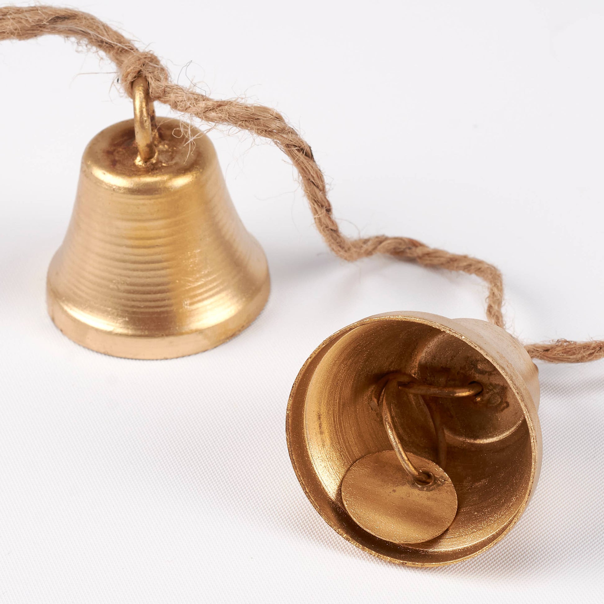 A decorative garland from our Christmas Collection displaying a vintage design of eight decorative metal bells hanging along a jute rope. Garland features metal rings at each end. Our Bells garland includes 48 inches of length for plenty of coverage and is easy to hang via metal rings. A seasonal home accent with a variety of display options.