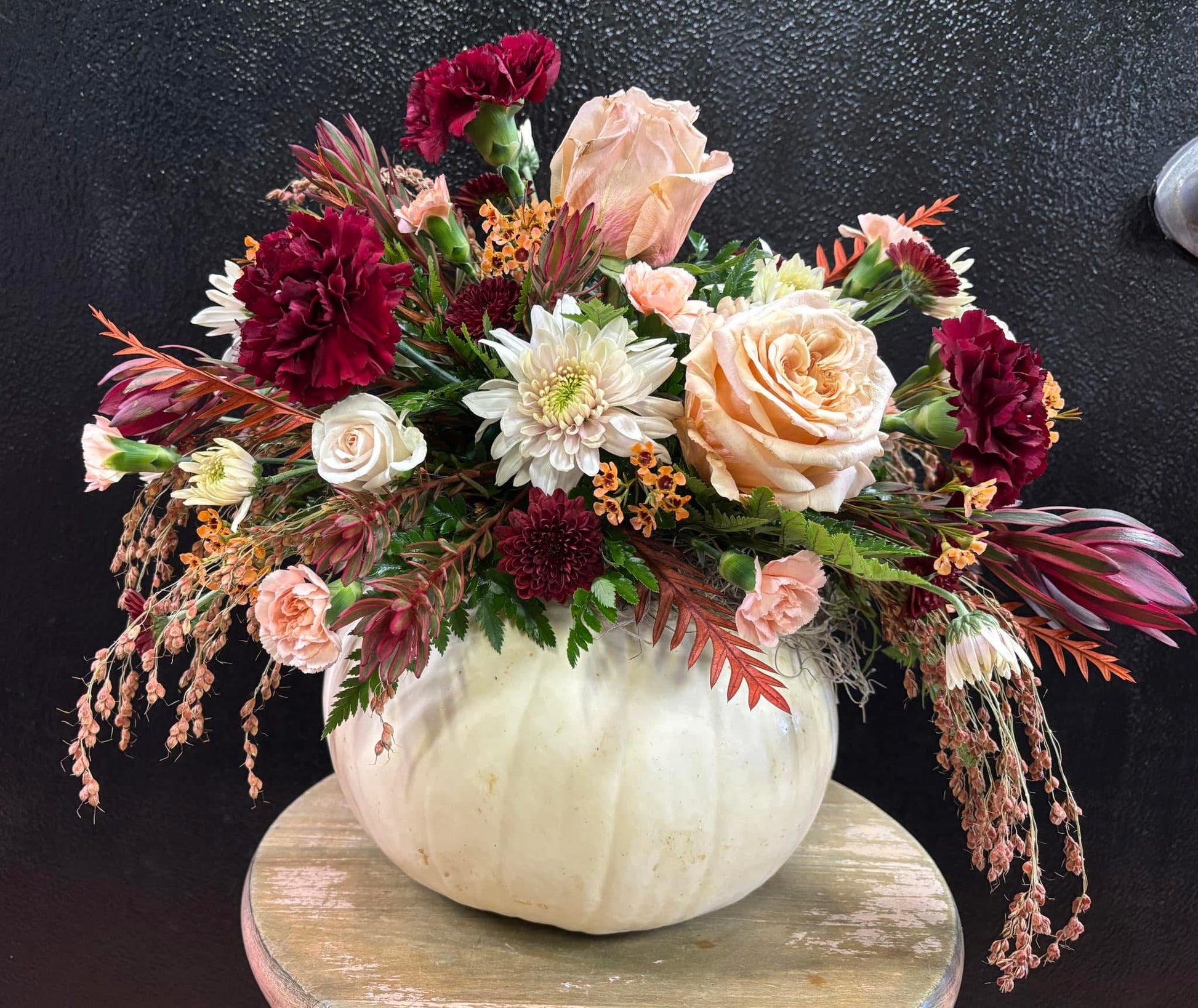 A fresh twist on gifting — seasonal blooms arranged in a unique, reusable container like a candle, pitcher, mug, tumbler, or decorative dish. Each piece is unexpected, beautiful, and becomes a keepsake long after the flowers fade.