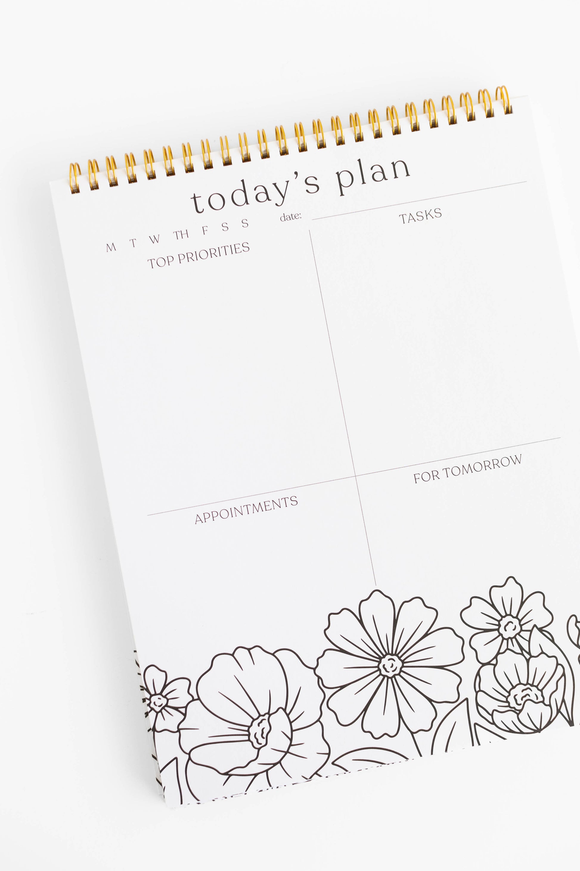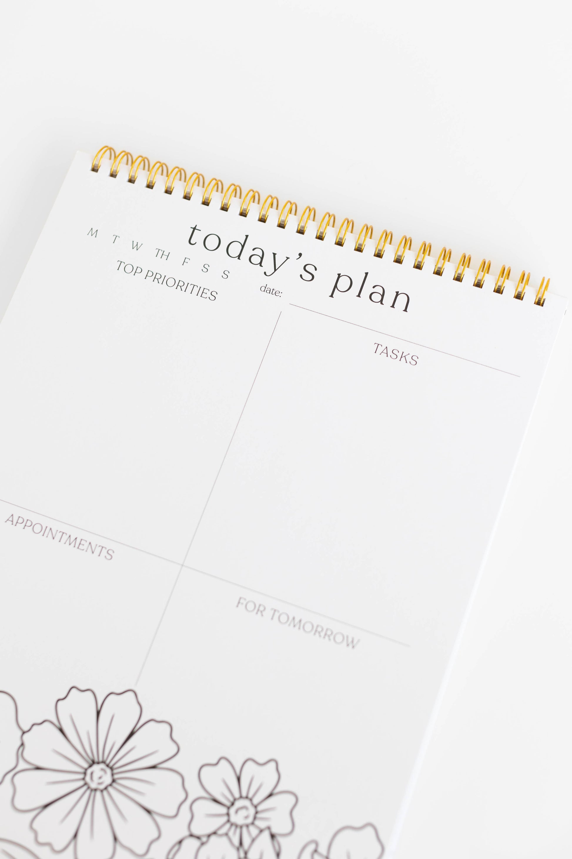 Our Color-In Daily Planner is designed to seamlessly blend creativity into your daily routine. Whether you're scheduling appointments, jotting down notes, or sketching out ideas, start by adding a splash of color to your day. With its top-bound spiral binding, flipping pages is effortless, ensuring smooth transitions as you navigate through your tasks and creative endeavors.