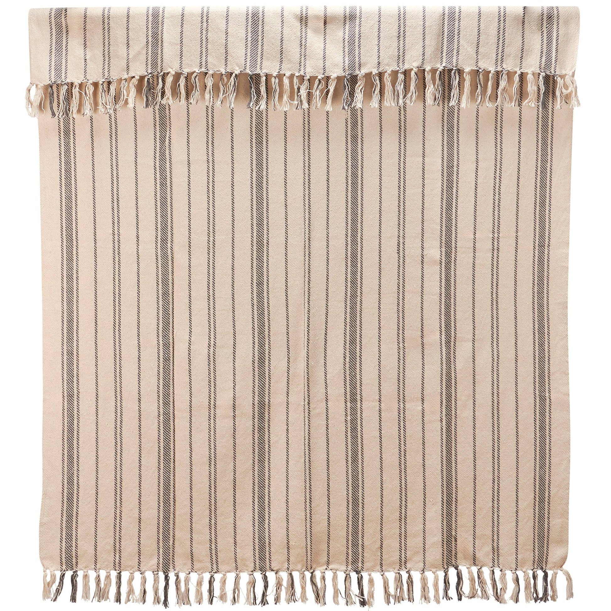 A cotton throw blanket from our Farmhouse Collection displaying a rustic stripe pattern woven throughout in a farmhouse inspired color palette with tassels on top and bottom edge. Farmhouse throw blanket measures 50 x 60 inches giving plenty of coverage to accent furniture or to cozy up under the blanket. Our Farmhouse Stripe throw blanket is conveniently machine-washable for easy cleaning. A farmhouse inspired home accent perfect for adding rustic style to any room.